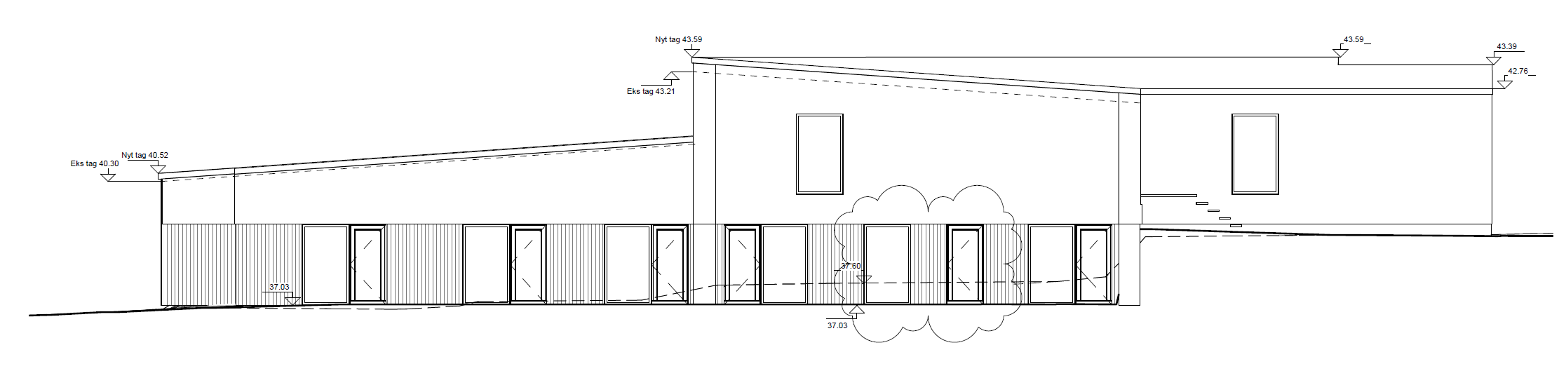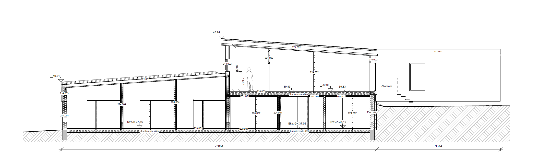 - Tagkonstruktion er løftet for at kunne ændre spændretningen for tagkonstruktionen ved baghuset.