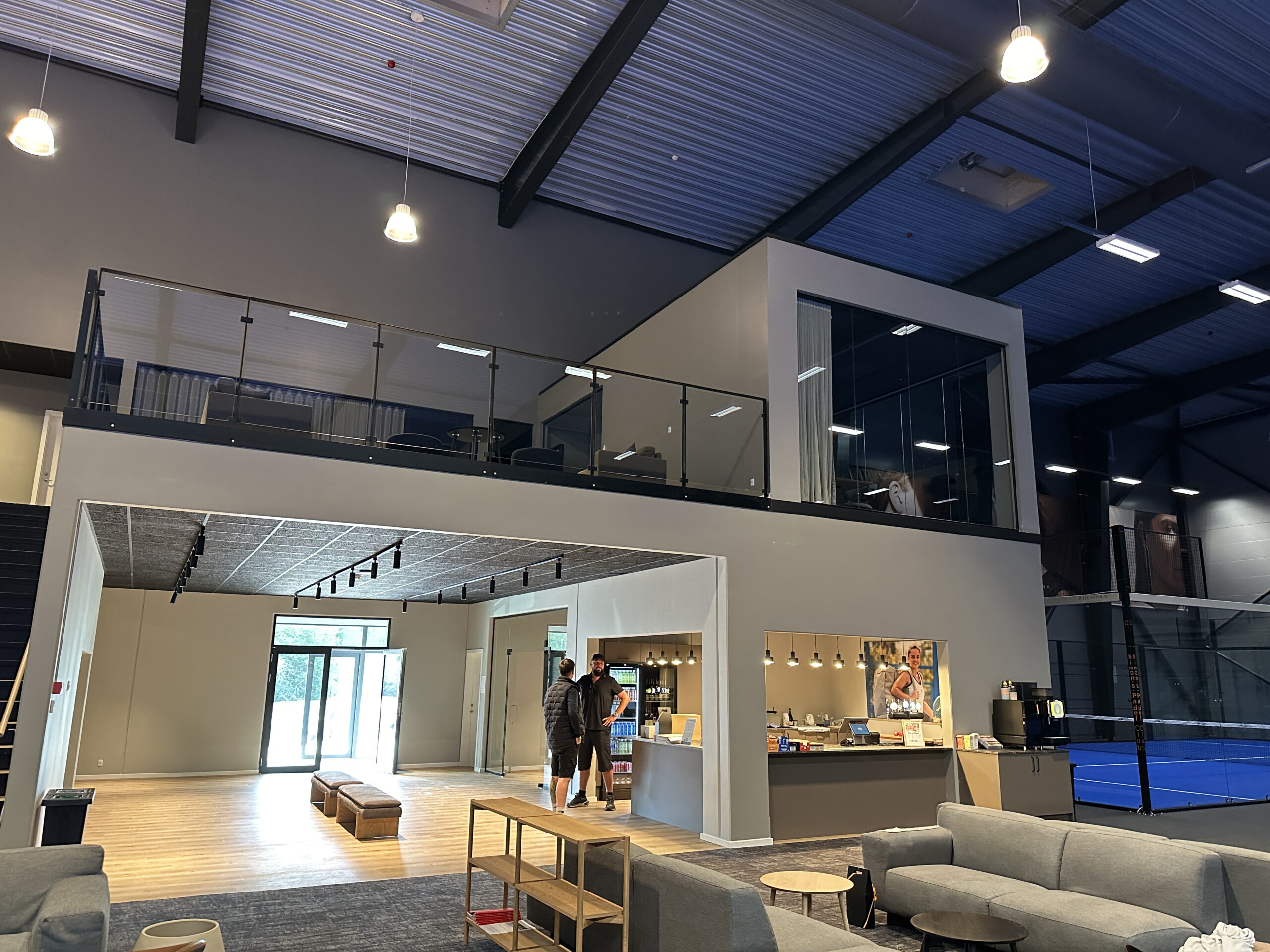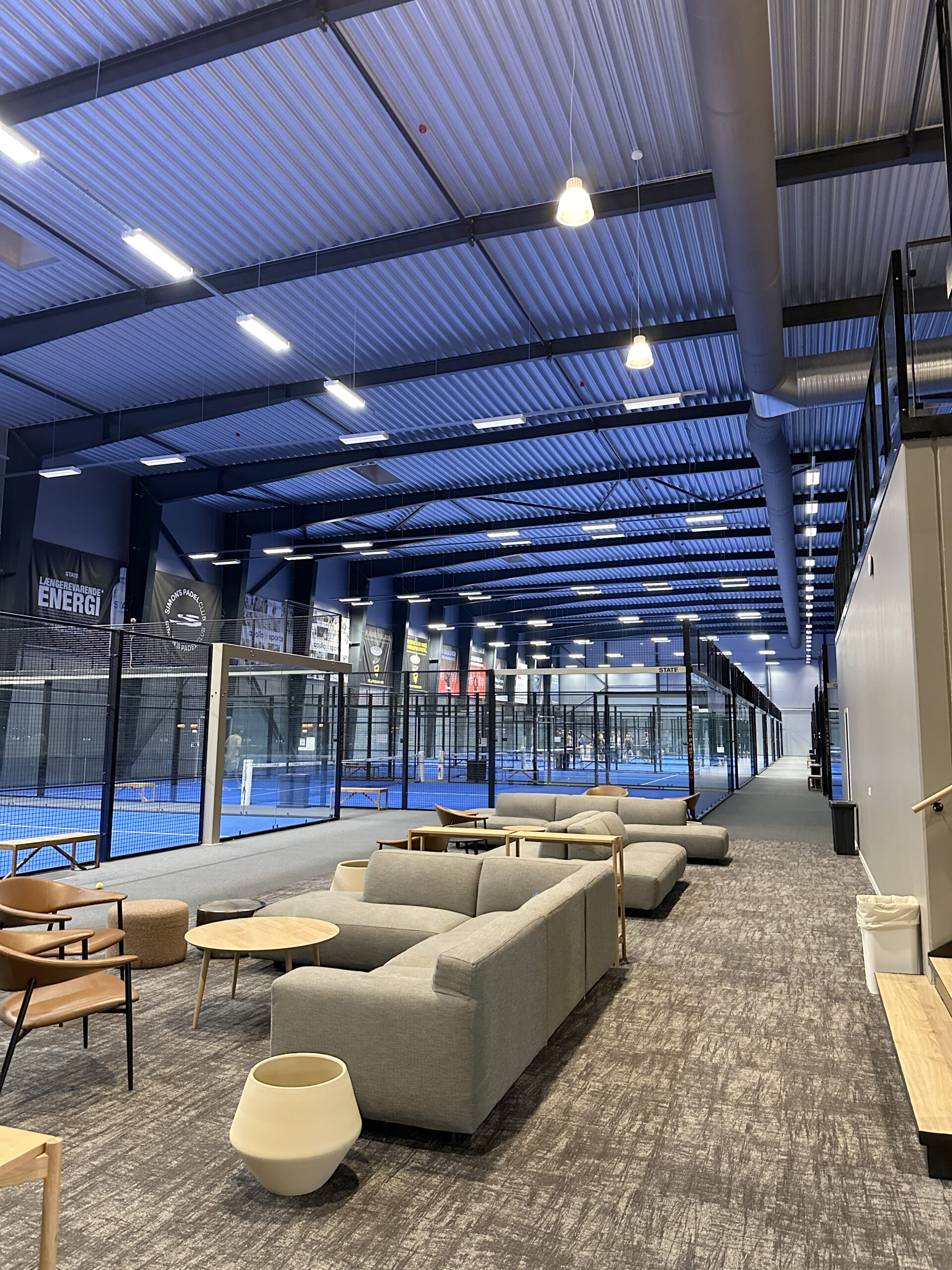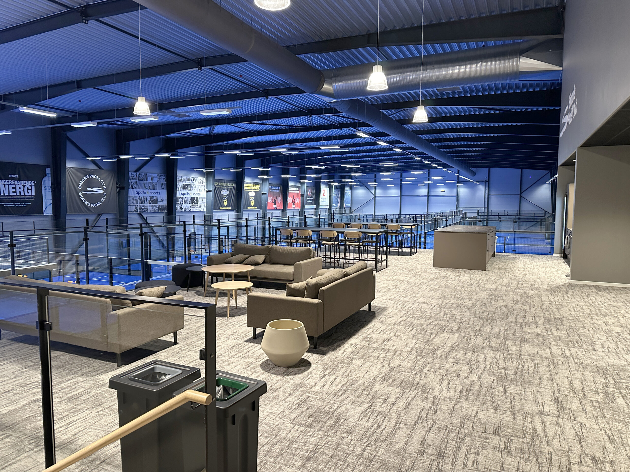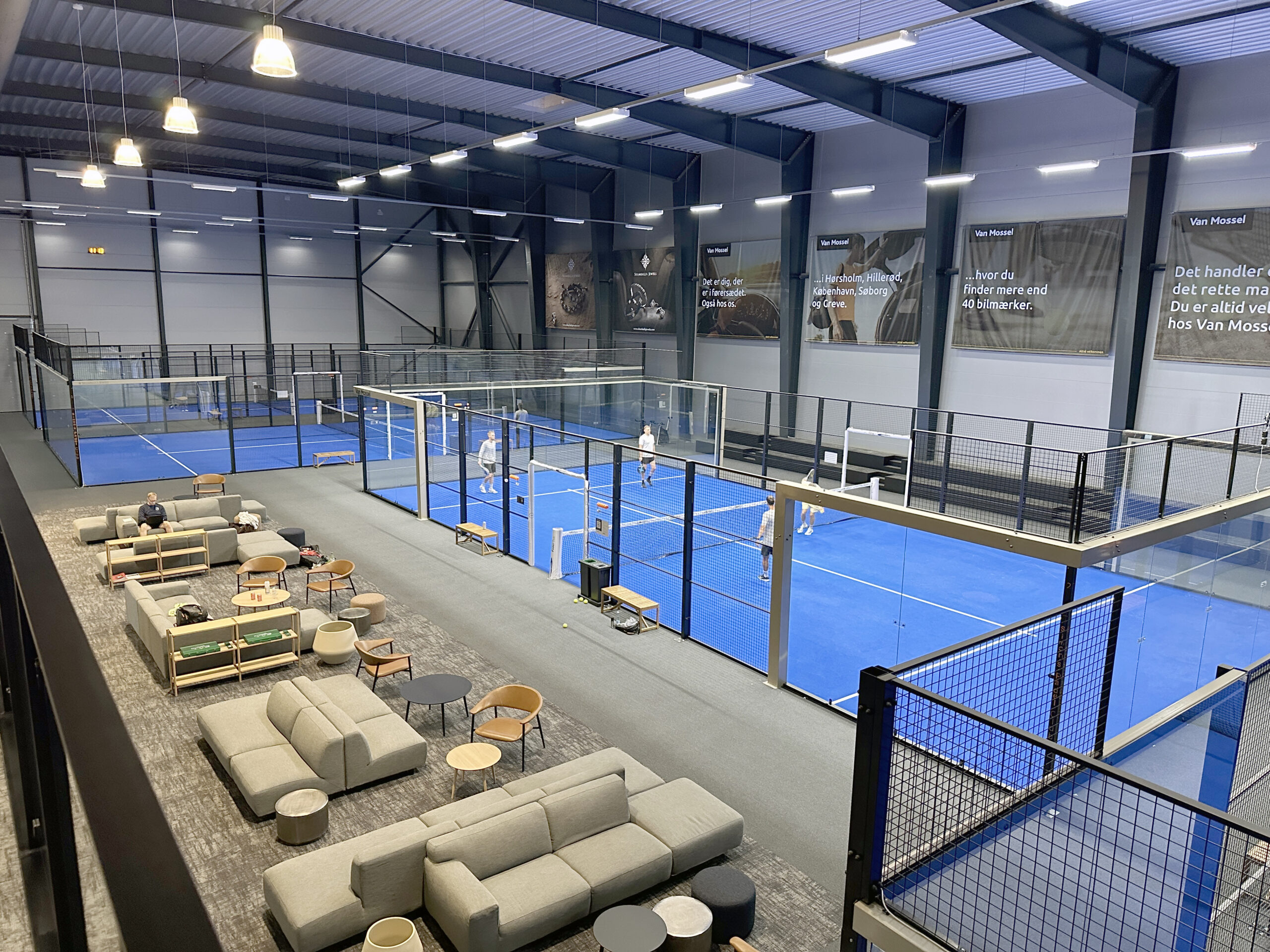 Padelhallen indeholder 12 doublebaner og 1 singlebane til padel, heraf 1 opvisningsbane med tilskuerpladser. Herudover etableres et område på 314 m2 på hhv. stueplan og 1. sal med velfærdsforanstaltninger til omklædning, mødelokaler, cafe, teknik mm.